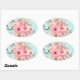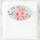 Adesivo Oval Flores Rosa Esmagadas no Azul Claro