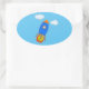 Adesivo Oval Foguete Espacial do Cartoon no Céu Azul