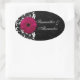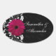 Adesivo Oval Fuchsia Scroll Gerbera Daisy w/Black and White