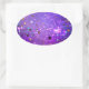 Adesivo Oval Fundo de folhas roxas com estrelas