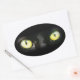 Adesivo Oval Gato Preto, Olhos Verdes Amarelos, Sonhos e Estran