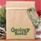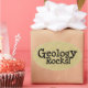 "Geology Rocks!" numa porta copos com um martelo marrom. Um design básico que diz tudo!