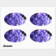 Adesivo Oval Hídrangas azuis florais roxas Elegantes