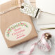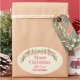 Etiquetas OVAL de Natal personalizadas com uma na moda, moderna aquarela de groselha verde e bagas vermelhas num fundo de listra de marfim pálida com a sua saudação e informação em caracteres quicos. CORRESPONDENDO a itens na nossa loja.