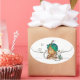 Ilustração colorida de Paul Woodroffe de Humpty Dumpty vestindo um roupão, sapatilhas vermelhas e um turbante, segurando um cetro, sentado de pernas cruzadas, enquanto fumava um cachimbo de prostituta. Maravilhosa arte de vintage de "Trinta Canções de Nursery Antigos", 1912.