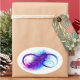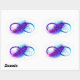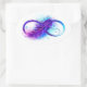 Símbolo infinito com uma bela pena pintada em cores roxas e azuis brilhantes sobre fundo branco.