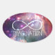 Um adesivo oval divertido com o círculo infinito e um legal fundo da galáxia arco-íris. Excelente para hipsteres ou qualquer pessoa que aprecie o espaço. Com a habilidade de mudar o texto, pode ser um nome, uma palavra ou simplesmente deixá-lo como "IMAGINAÇÃO". Deixar vazio do caso se não desejar uma redação.
