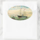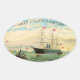 Ilustração de viagens vintage que promove a Companhia Inman Steamship, mostrando uma vaivém precoce de um design de transição com velejamento junto com chaminés.