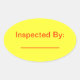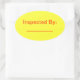 Estas etiquetas de inspeção ovais do produto têm um fundo amarelo com "Inspeções por:". Estes adesivos têm cor para uma elevada visibilidade. Apenas descasque e cola. Estes rótulos são perfeitos para grandes e pequenas empresas. Este design pode ser adquirido como está ou você pode usá-lo como um modelo para fazer seu próprio design único. São oferecidas outras etiquetas e designs de envio/aviso.