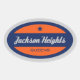 Design de sinalização oval com os bairros de Nova Iorque. Cor oficial laranja e azul da NYC. Jackson Heights, bairro de Queens. Apresentando os bairros do Queens de: Astoria, Auburndale, Bayside, Corona, Ditmars, Elmhurst, Floral Park, Flushing, Forest Colinas, Hollis, Jackson Heights, Jamaica, Long Island City, Midvillage, Ozone Park, Rego Hill, Rockaway, Woodhaven