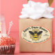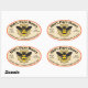 Gráfico da Rainha Bee no medalhão central de um adesivo colorido, cercado por um padrão geométrico de fundo. Personalize o texto com o tipo de mel, a firma, o endereço e o peso líquido do seu produto. Estes autocolantes ajustado frascos de pedras grandes, de 4 litros e 5 litros, recipientes de vidro redondos e hexagonais.