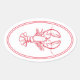 Este adesivo oval inspirado na costa apresenta uma lagosta clássica, vermelha e branca, sobre um fundo branco sólido.