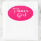 Adesivo Oval Letra Retron Script White da Menina Flor em Rosa Q