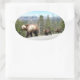 Adesivo Oval Mamãe e Cubs de Urso Grizzly Selvagem em Yellowsto