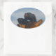 Adesivo Oval Mangueiras Pretas Com Céu Azul Montanhas Enfumaçad