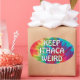 Mantenha Ithaca esquisita com este adesivo engraçado para apoiar os negócios locais, assim como as artes, o incomum e excêntrico na cidade universitária de Ithaca, Nova Iorque. Fundo colorido de coloração de gravata.