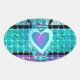 Adesivo Oval Mantenha-o simples: Coração ciano e arte-padrão de