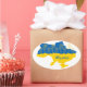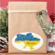Adesivo Oval Mapa da Ucrânia com girassol e bandeira ucraniana