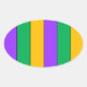 Adesivo Oval Mardi Gras Stripes Padrões Púrpura Amarelo Verde