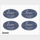 Adesivo Oval Marinho de Script de Amor Elegante e Casamento Bra