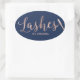 Adesivo Oval Marinho de Script Dourado do Artista Rosa do Makeu