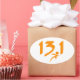 Meia maratona laranja 13.1 com símbolo de ponto de corrida.