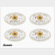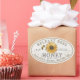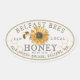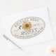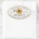 Rótulo de mel oval, de captura de olhos. Personalize com seu nome apiário, endereço e peso líquido do produto. Design de fundo amarelo e dourado iridescente do mel, completo com a sua própria ilustração realista da abelha de mel e do girassol pelo artista holandês Johan Teyler c1688-1698.