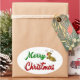 Adesivo Oval Merry Christmas Flying Reindeer red green script