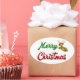 Vestidos com Feliz Natal em texto verde e vermelho 3D e renas de Natal. Os adesivos estão disponíveis em várias formas.