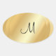 Adesivo Oval Modelo de Monograma de Script de Mão Dourada Perso