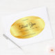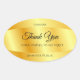 Modelo de texto de agradecimento manuscrito com aparência dourada Adesivo oval elegante.