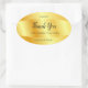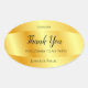 Modelo de texto manuscrito em ouro de agradecimento Adesivo oval elegante.