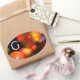 ADESIVO OVAL MONOGRAMA DE BOLHAS FRACTAIS PRETAS AMARELAS DE LA