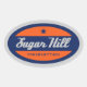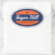 Design oval do signage que caracteriza as vizinhanças da Nova Iorque. Cores alaranjadas e azuis oficiais de NYC. Vizinhança do monte do açúcar de Manhattan.