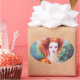 ADESIVO OVAL MULHER ROMÂNTICA COM PENA DE PAZ ESPUMANTE