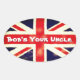 O nosso Sindicato do Jack Bob é o Tio Legal dos Pinheiros Oval são perfeitos para anglófilos em todo o lado! Design apresenta a icônica bandeira do Reino Unido, o bandeira da União, feita em um estilo de vintage bem vestido, junto com texto em branco. Se você escava coisas britânicas, você certamente gosta destas. Excelente de acrescentar aos pacotes, como para selar cartas, ou como um pequeno presente divertido para os amigos britânicos. Preço pela folha com descontos de volume disponíveis!