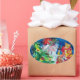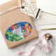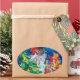 ADESIVO OVAL PAPAIS NOEIS COM ÁRVORE DE NATAL E PRESENTES