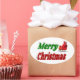 Vestidos com Feliz Natal em texto verde e vermelho 3D e trajes de Papai noel. Os adesivos estão disponíveis em várias formas.