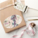 Eu coloquei uma bela placa de moda do século 18 de uma boa mulher levando seu pequeno cachorro para passear com urnas, plintos, uma dispersão de íris, rosas em cheio e lavanda em um fundo rosa pálido e listrado com creme