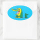 Adesivo Oval personagem de desenho animado do crocodilo de alin