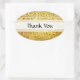 Um conjunto de adesivos ovais amarelos "Obrigado" com hieróglifos antigos gravados na pedra. As palavras "Obrigado" são personalizáveis!