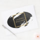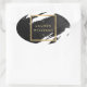 Pinceladas de tinta preta e intensa criam um cenário abstrato neste design de adesivo personalizado. Seu nome ou o nome da sua empresa é exibido em uma caixa em dourado falso para uma estética moderna. Esses adesivos são ótimos para usar no fechamento de envelopes ou pacotes, personalizar o texto para dizer 'obrigado' para lembrancinhas de festa, usar para rótulos de produtos ou velas, ou para personalizar os materiais do seu escritório ou material escolar. Arte e design © 1201AM Design Studio | www.1201am.com