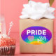 Orgulho Colorido Arco-Íris com um adesivo cardíaco que pode ser personalizado.
