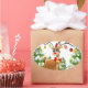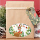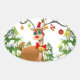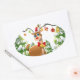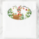 Reindeer Bonito na Neve com árvores e ornamentos pendurados em suas galhadas