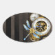 Adesivo Oval Relógio Steampunk com Dragonfly Mecânica