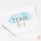 Peça aos seus convidados do partido que votem no gênero do bebê com estes adesivos divertidos. Este design moderno apresenta as palavras "Team boy" e é acentuado com a caligrafia dourada sobre o fundo azul de aquarela.
