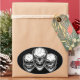 Seja a vida da festa vestindo este engraçado produto de trio do crânio rindo, apresentando três crânios risonhos metálicos. A trio do crânio inclui um crânio de olhos largos, um crânio piscando, e um crânio rindo tão duro, que não consegue manter seus olhos abertos. Projetado para todos que amam uma boa risada: comediantes, piadas, pianistas e a vida do partido. Adicione seu próprio texto, para um toque personalizado. Estes bons e humorados crânios cômicos terão sempre a última risada.
