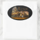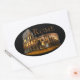 O incrível Coliseu Romano permaneceu por quase 2000 anos. Diz-se que se o Coliseu cair, Roma também. A porção sul foi parcialmente destruída em um terremoto. Nessa fotografia, a estrutura imponente é iluminada no preto da noite. Este adesivo em forma oval é totalmente personalizável.