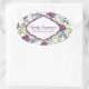 Adesivo Oval Rosas de estilo retro roxo e branco Monograma de p