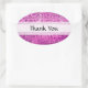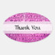 Um conjunto de adesivos ovais roxos "Obrigado" com hieróglifos antigos gravados na pedra. As palavras "Obrigado" são personalizáveis!